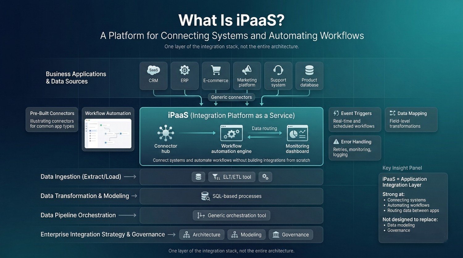 - iPaaS solves the execution problem, connecting systems, automating flows, running pipelines reliably at scale