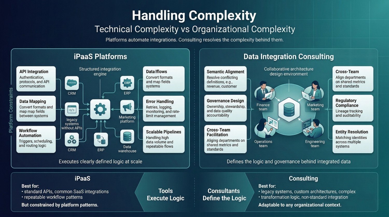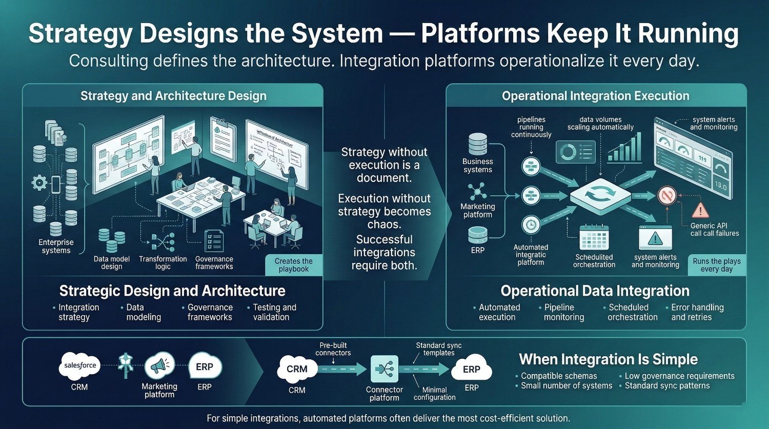 Consulting designs the playbook. iPaaS runs the plays every day. You need both for a complete solution.
