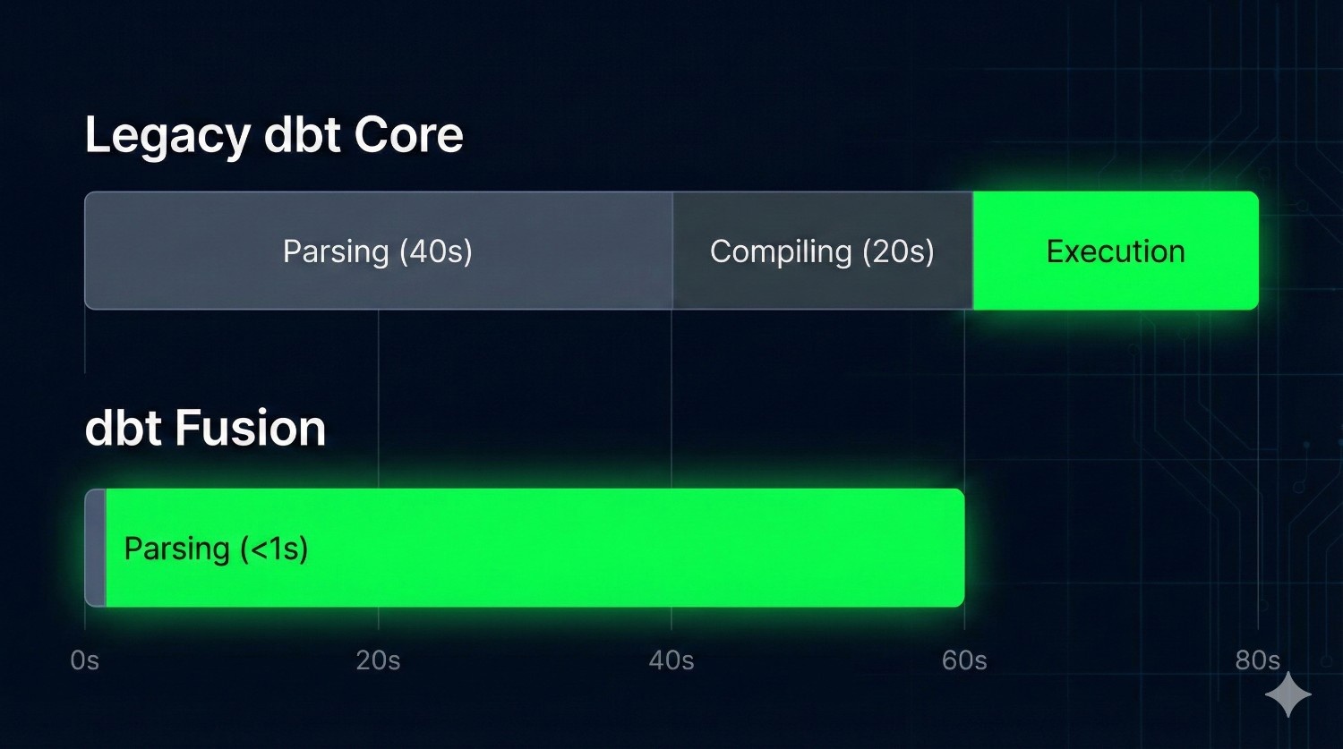 The Numbers: Milliseconds, Not Minutes dbt Fusion obliterates this bottleneck. Because Rust handles file I/O and memory management with near-zero overhead, it can parse that same 5,000-model project in milliseconds.