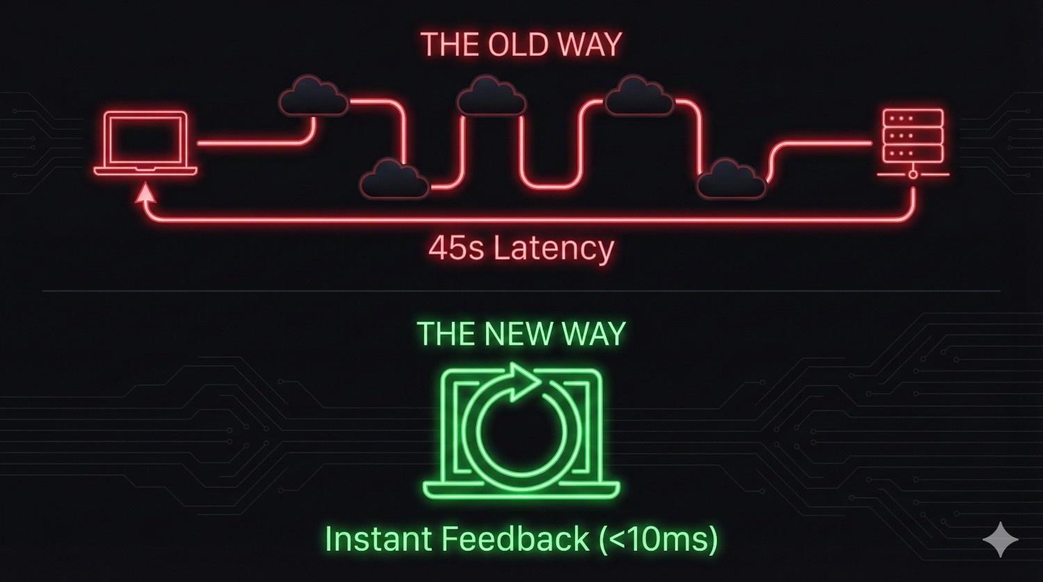 This feedback delay—repeated dozens of times a day—doesn’t just cost time. It breaks developer flow.