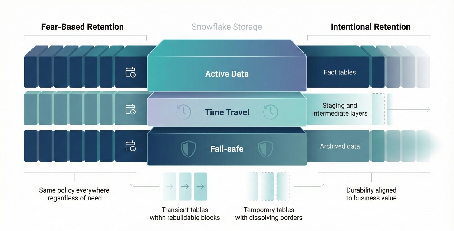 Storage is rarely the real cost problem. Snowflake uses compressed columnar storage, which is generally more  compared to legacy systems. However, storage includes more than just “current data”: