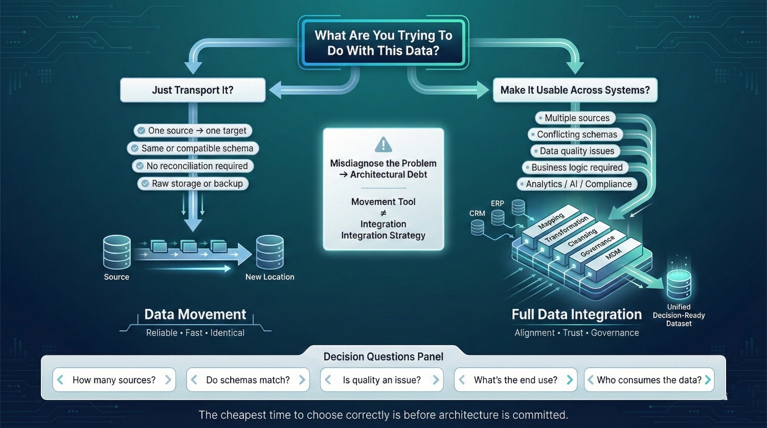 Here’s the root of the problem, data movement and data integration get treated as the same thing. They’re not. This confusion shows up everywhere: