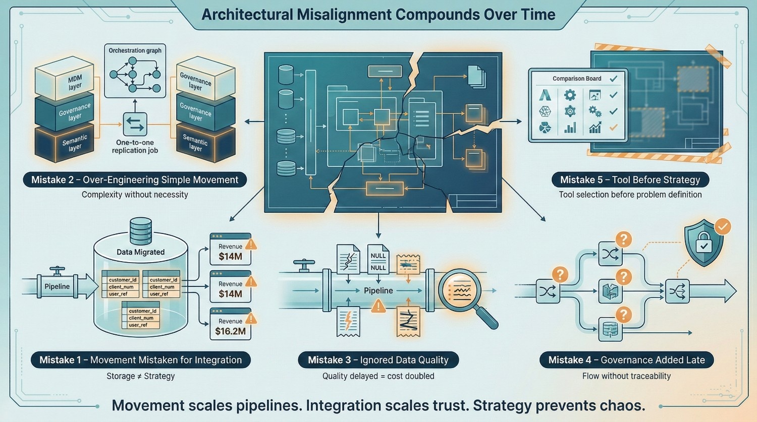 - Lack of strategic framing, without a clear data strategy, teams default to solving the most obvious problem (transport) and miss the harder one (unification)