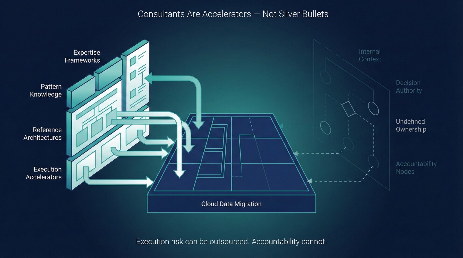 Consultants adapt to the environment they are placed in. Consultants do not introduce dysfunction into migrations; they surface it faster. Strong operating models become visible sooner. Weak ones fail sooner. In that sense, consultants are not the cause of outcomes—they are accelerants.