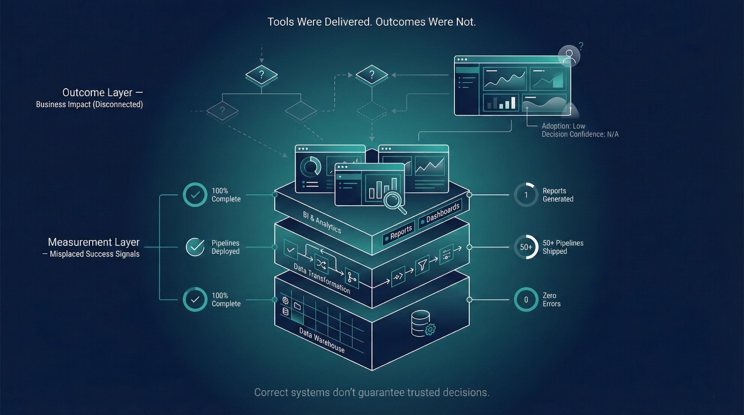 Not by pipelines delivered or dashboards shipped. Success should be measured by: