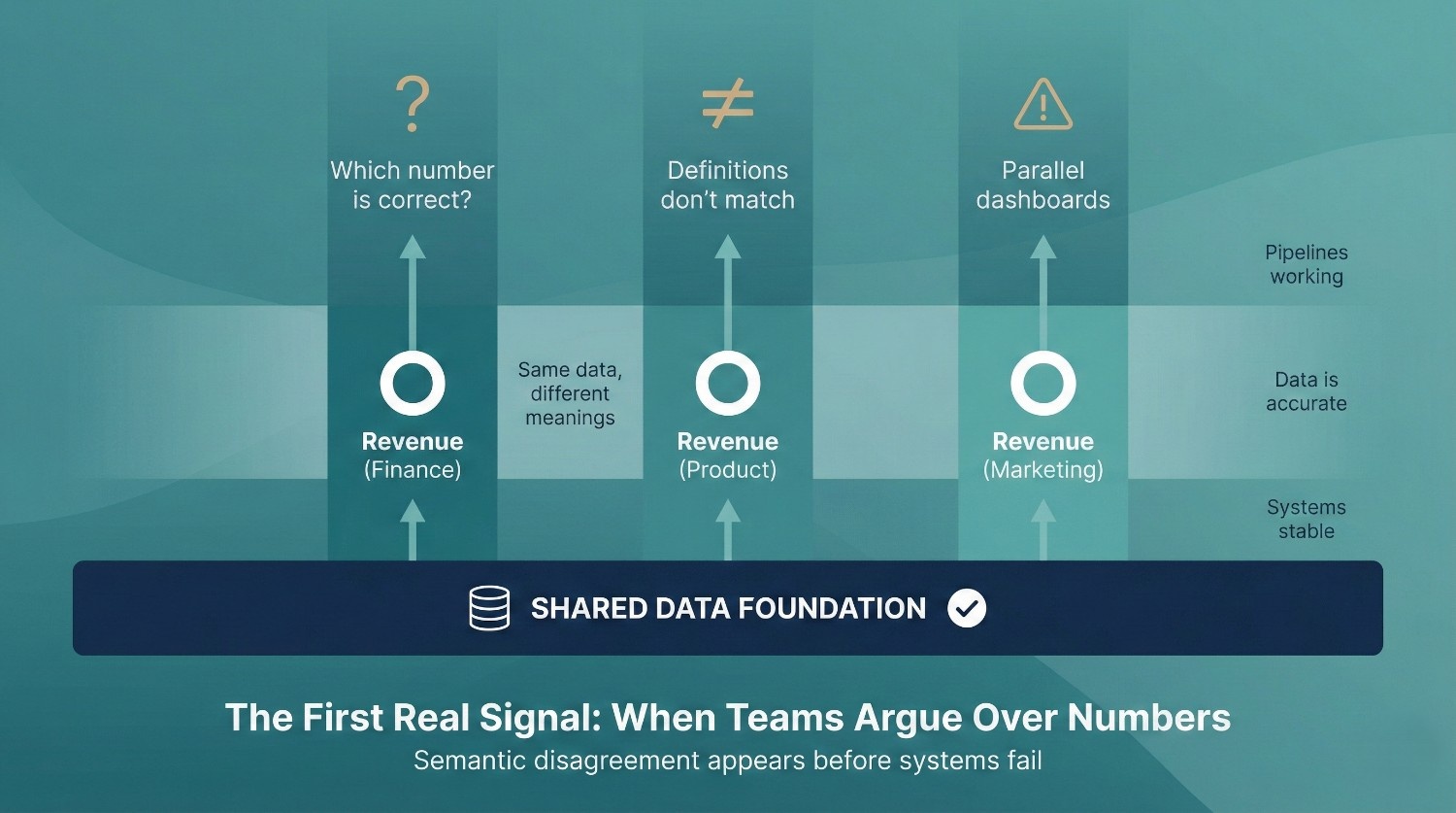 Data quality failures are usually binary. Pipelines break, reports fail, or values are clearly wrong. Semantic failures are subtler. The data is correct, but the interpretation is contested.