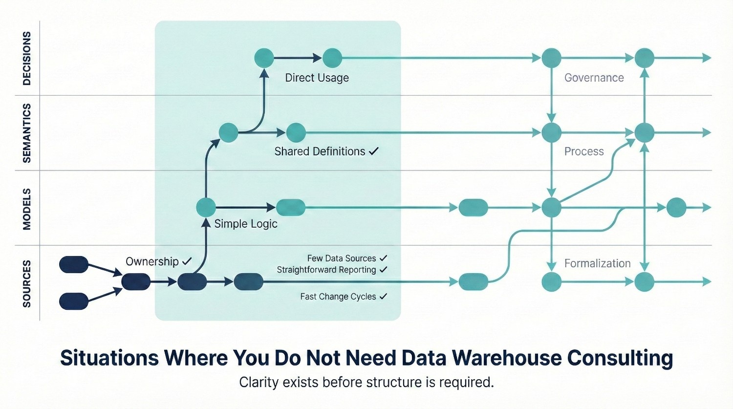 In these scenarios, Data Warehouse Consulting doesn’t fail in these cases. It simply doesn’t add much value.The higher-leverage move is usually: